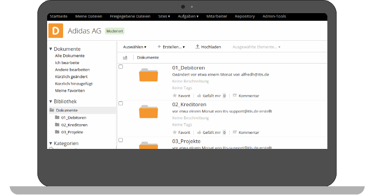 The folder structure in ITISeasy.docs can be populated manually as well as automatically. The automatic population only works when a business system like ITISeasy.business is connected and the configuration for automatic document uploads is set up.