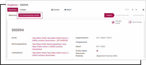Mit „Senden & Drucken“ wird die XML automatisch eingebettet
